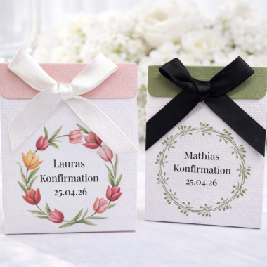 Uanset om du fejrer barnedåb, konfirmation, bryllup, studenterfest eller fødselsdag, kan du nemt bestille og personliggøre invitationer, menukort, bordkort, velkomstskilte, fingertrykplakater – og endda personlige slik- og chipsposer.
